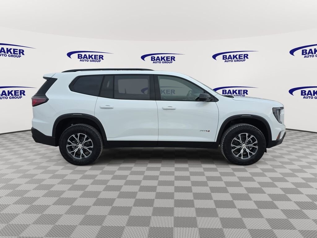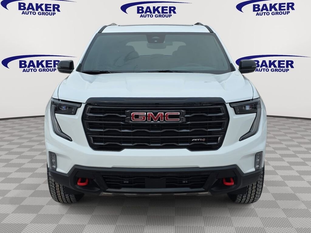 Summit White 2026 GMC Acadia AT4 AWD 8-Speed Automatic 2.5L DOHC Acadia AT4, 4D Sport Utility, 2.5L DOHC, 8-Speed Automatic, AWD, Summit White, Forest Storm W/Mahogany Accents Cloth, Navigation System.