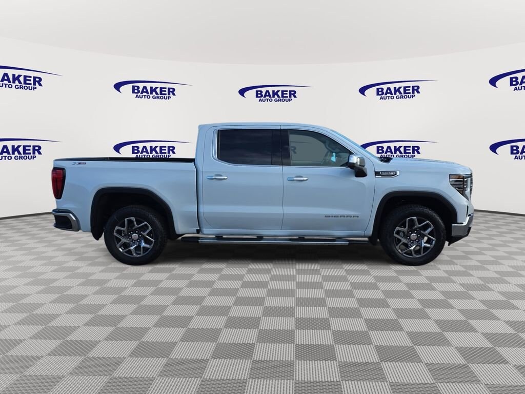 Glacier White Tricoat 2026 GMC Sierra 1500 SLT 4WD 10-Speed Automatic EcoTec3 5.3L V8 Sierra 1500 SLT, 4D Crew Cab, EcoTec3 5.3L V8, 10-Speed Automatic, 4WD, Glacier White Tricoat, Dark Walnut/Slate Leather, 120-Volt Bed Mounted Power Outlet, 120-Volt Interior Power Outlet, 170 Amp Alternator, 2 Charge/Data USB Ports, 2 Charge/Data USB Ports Inside Center Console, 2 Type-C Charge-Only Rear USB Ports, 20 Polished Aluminum Wheels, 6-Speaker Audio System Feature, Adaptive Cruise Control, Auto-Locking Rear Differential, Auxiliary External Transmission Oil Cooler, Color-Keyed Carpeting Floor Covering, Deep-Tinted Glass, Dual Exhaust System, Electric Rear-Window Defogger, Electronic Precision Shift, Floor-Mounted Center Console, Front Bucket Seats, Front Frame-Mounted Black Recovery Hooks, Front Rain-Sensing Wipers, HD Rear Vision Camera, Heated 2nd Row Outboard Seats, Heavy-Duty Air Filter, High Capacity Suspension Package, Hill Descent Control, Hitch Guidance, Integrated Trailer Brake Controller, LED Cargo Area Lighting, Navigation System, Off-Road Suspension, OnStar Services Capable, Perimeter Lighting, Power Door Locks, Preferred Equipment Group 4SA, Premium Bose 7-Speaker Sound System, Push Button Start, Rear Wheelhouse Liners, Remote Vehicle Starter System, SLT Convenience Package, SLT Preferred Package, SLT Premium Package, Standard Suspension Package, Steering Wheel Audio Controls, Trailering Package, Universal Home Remote, Wi-Fi Hotspot Capable, Wireless Charging, X31 Hard Badge, X31 Off-Road Package.