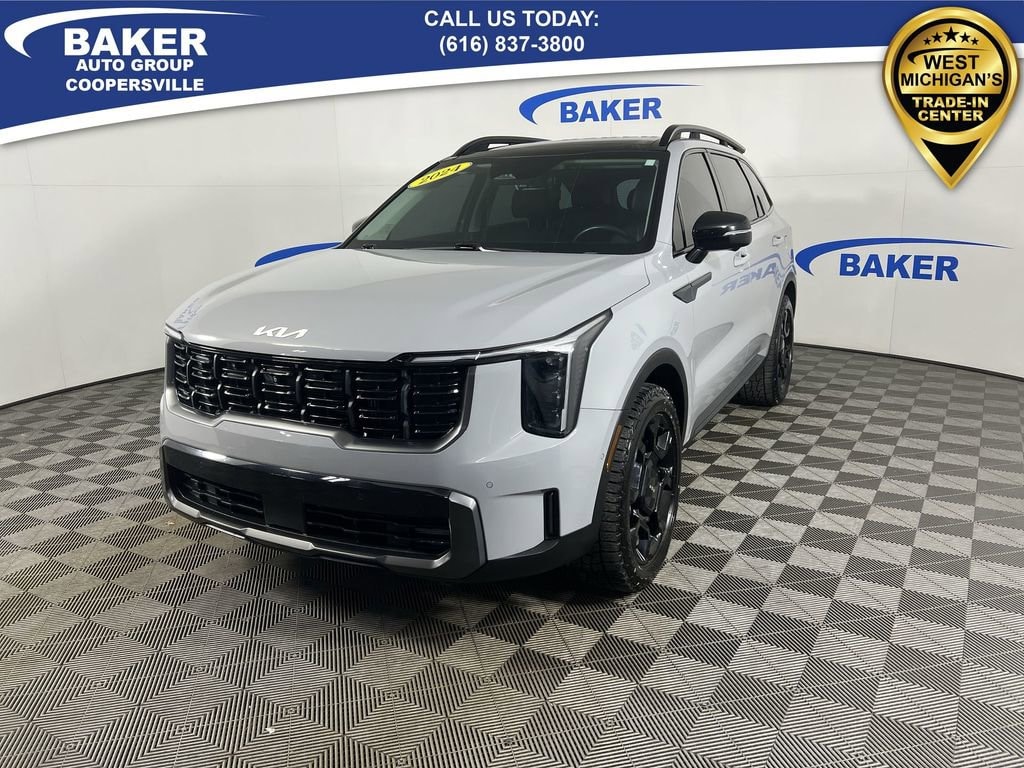 New Price! Wolf Gray 2024 Kia Sorento X-Line SX AWD 8-Speed DCT 2.5L I4 DGI Turbocharged DOHC 16V LEV3-SULEV30 281hp Non-Smoker, LOCAL trade in!, CAR BRAVO CERTIFIED - 12 month/12,000 mile Limited Bumper to Bumper Warranty!, Sorento X-Line SX, 2.5L I4 DGI Turbocharged DOHC 16V LEV3-SULEV30 281hp, 8-Speed DCT, AWD, Wolf Gray, Black Premium Synthetic, Apple CarPlay & Android Auto, Automatic temperature control, Exterior Parking Camera Rear, Front dual zone A/C, Heated front seats, Navigation System, Power driver seat, Power Liftgate, Power moonroof, Power passenger seat, Radio: AM/FM Audio System, SynTex Artificial Leather Seat Trim, Ventilated front seats, Wheels: 8.5J x 20 Gloss Black X-Line Alloy.